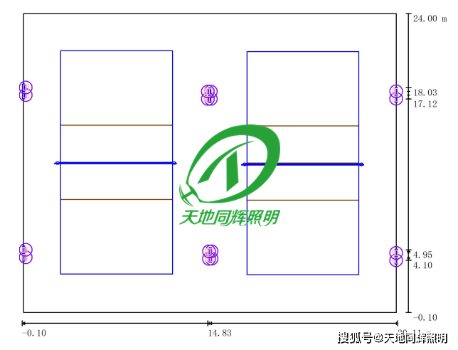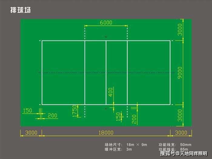 天地同辉在长期的体育场馆照明设计和灯具生产相关工作中发现排球场地--室外排球场的相关参数为: